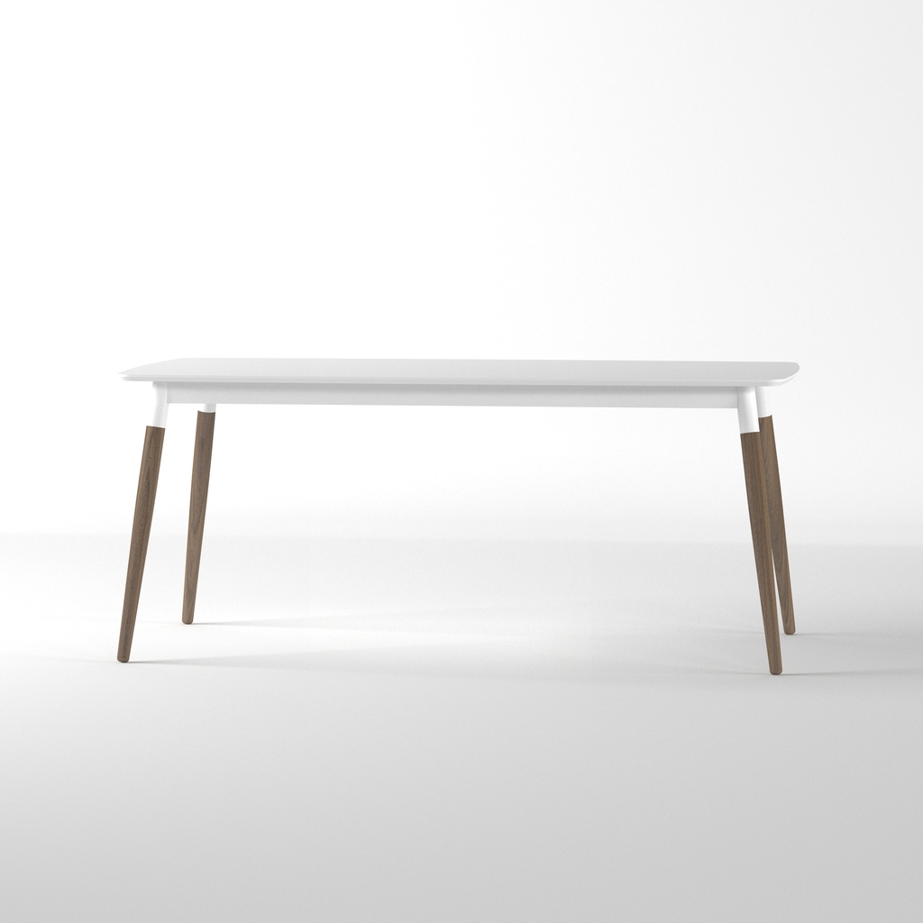 Mesa Lacar de estilo para cocinas y comedores diarios. Con tapa fija entera de MDF blanco con canto tratado, con estructura metálica de acero, posee patas de madera de paraíso disponible en 3 colores: lustre natural (color paraíso), lustre (marrón oscuro), lustre ébano (laca negra que deja ver las betas de madera).